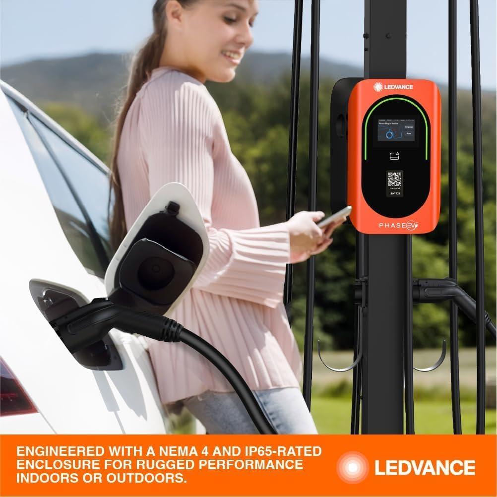 imageLEDVANCE Phase EV Commercial Charger Gen 2 Level 2 48 Amp 4G Module 115kW J1772 Charge Gun 25 ft Cable LCD Touch Screen NEMA 4 IP65 Orange 75905J1772Residential