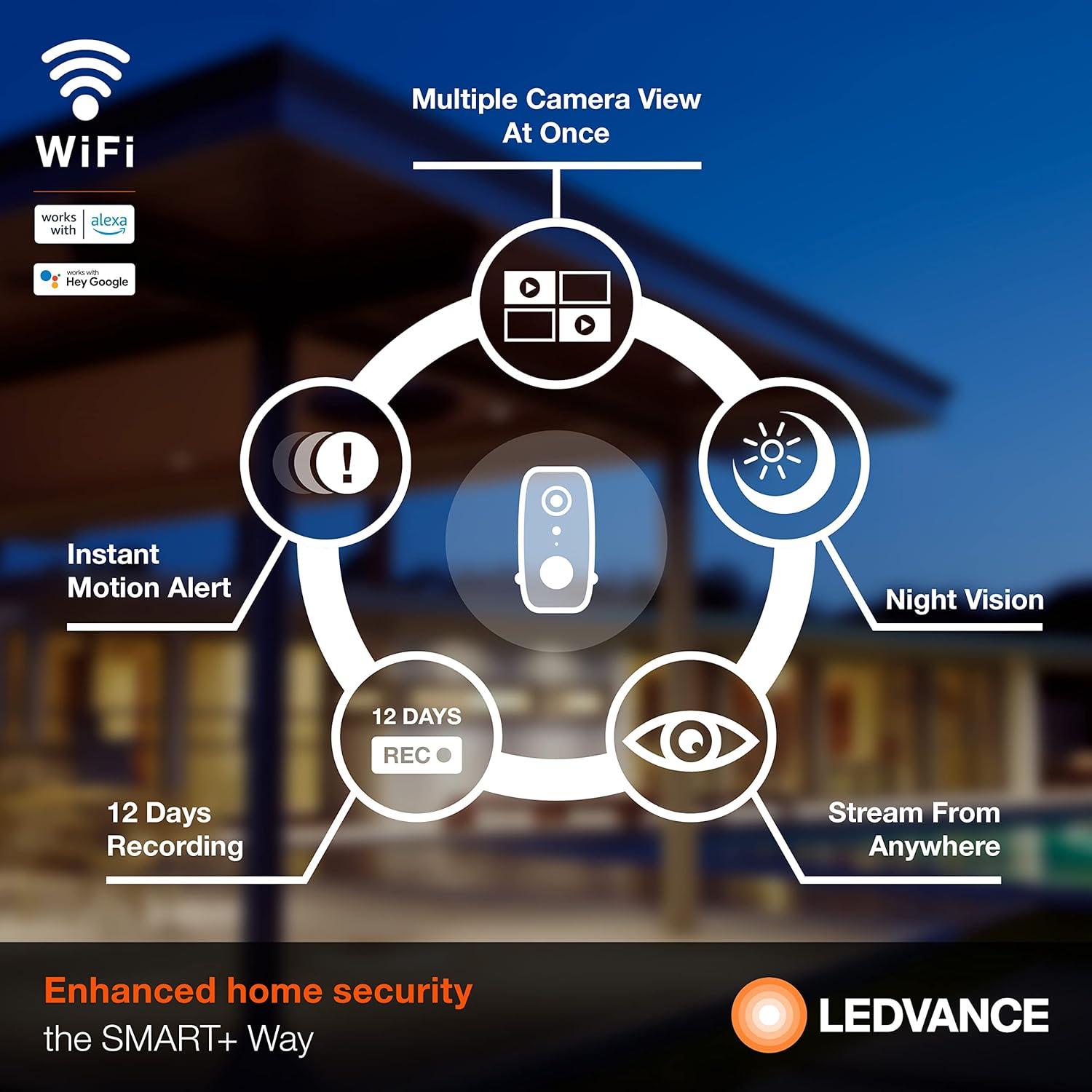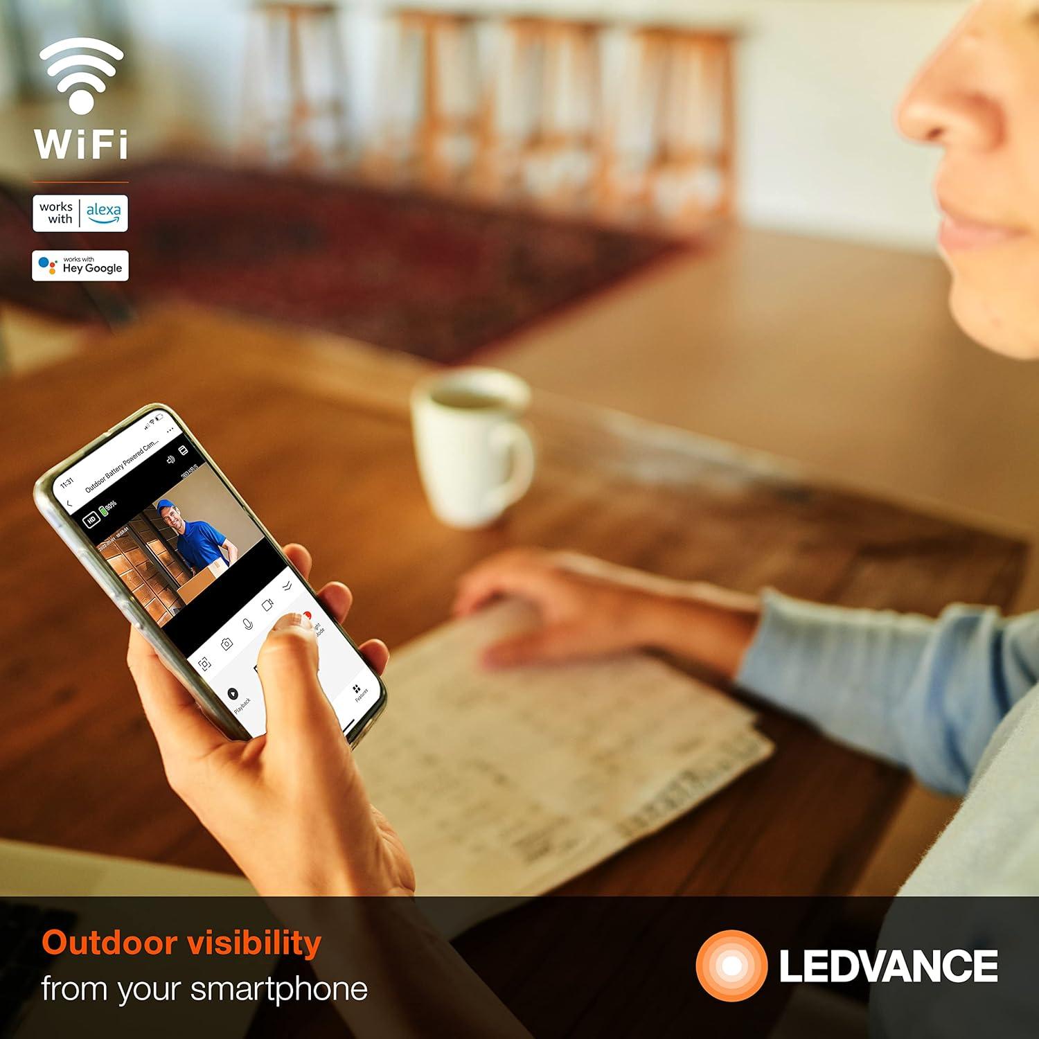 imageLEDVANCE WiFi Smart Outdoor Camera with Battery TwoWay Audio HD Video and Sensor Compatible with Alexa and Google Weatherproof White  1 Pack 75829Cam v2