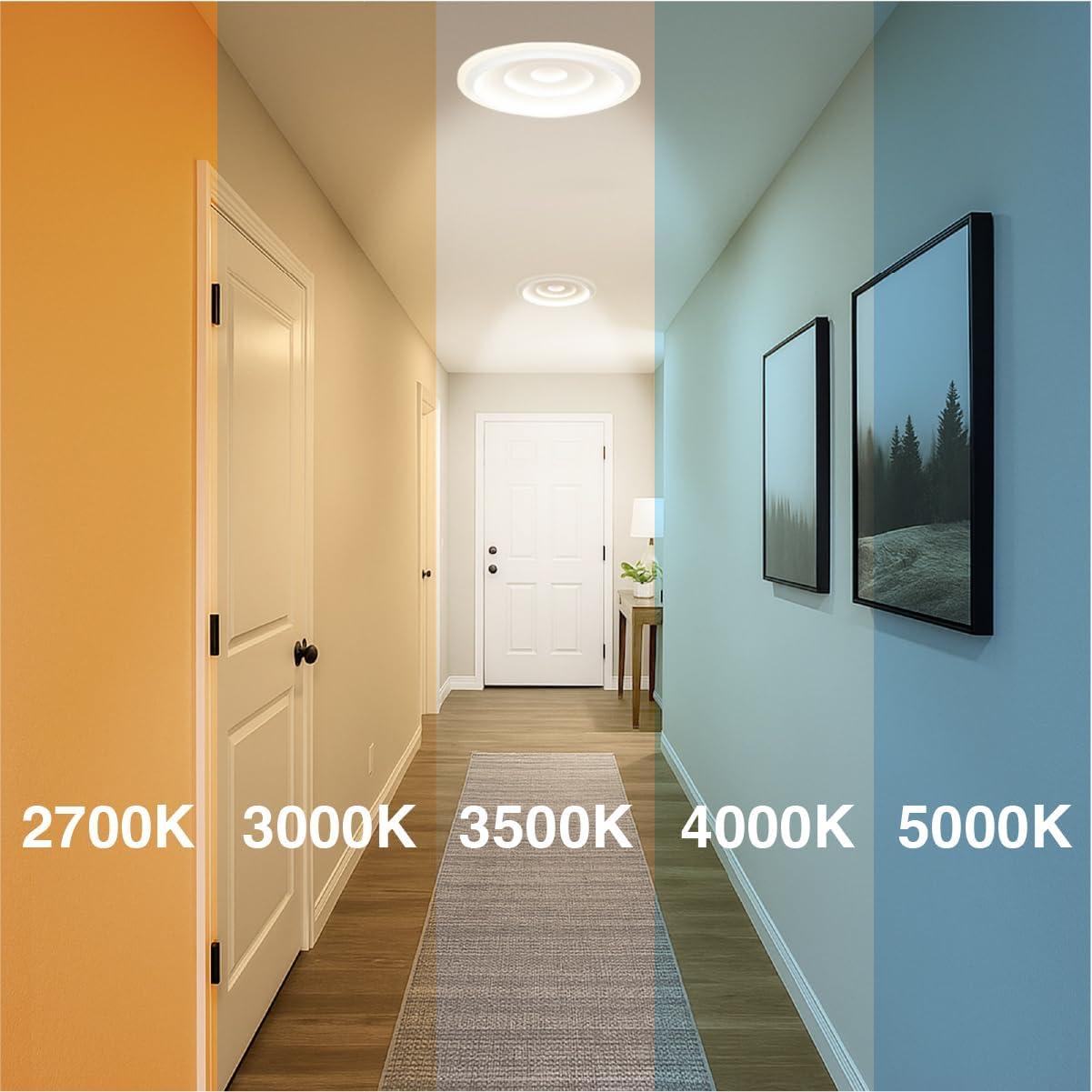 Five Adjustable Color Temperatures – Select between 2700K soft white, 3000K warm white, 3500K neutral white, 4000K cool white, or 5000K daylight. Whether you need a cozy, relaxing glow in the bedroom or bright, energizing light for kitchens and workspaces, this fixture adapts to your lifestyle with a simple setting.