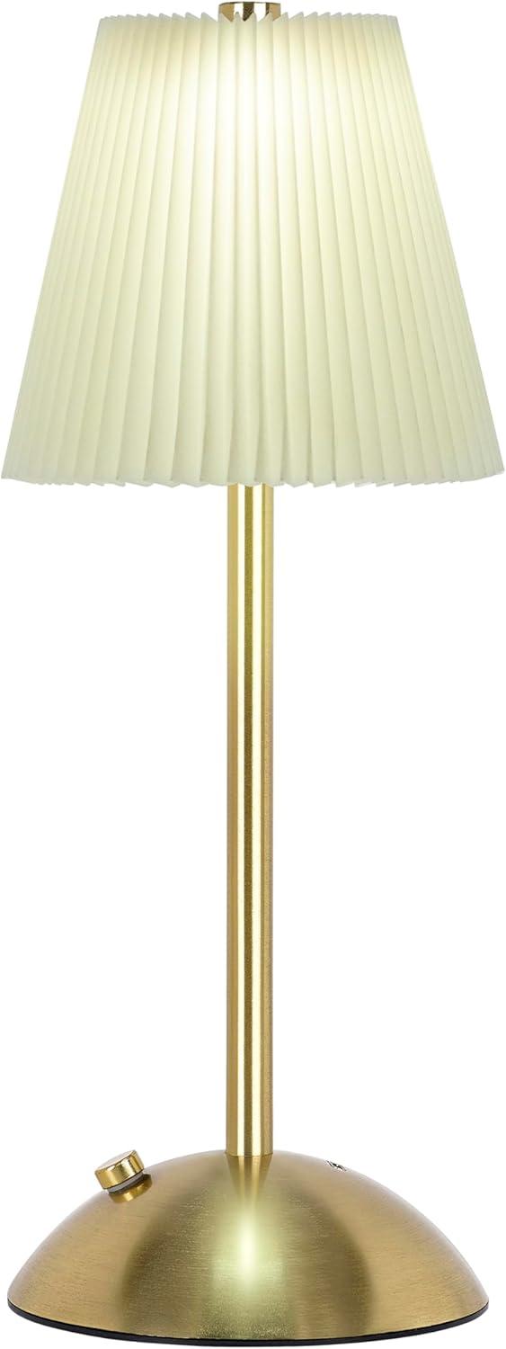 Bring warmth, versatility, and style to your home with the SYLVANIA 2.5W LED Battery Brass/Gold Table Lamp. Designed with both function and elegance in mind, this lamp features a USB-C charging port, making it easy to power your devices while you relax or work. With 3 selectable color temperatures (3000K warm white, 4000K bright white, and 5000K daylight), you can effortlessly adjust the lighting to match your mood, time of day, or activity. The soft cloth lampshade paired with a sleek gold finish adds a touch of sophistication to any end table, dresser, or workspace. Step-dimming functionality lets you fine-tune brightness, while the 80 CRI rating ensures true-to-life color rendering with less eye strain. Built for long-lasting performance, this energy-efficient LED lamp has a 10,000-hour lifespan and costs as little as $0.30 per year to operate. Damp-rated for safe use in various indoor environments, it’s the perfect blend of modern convenience and timeless design.
