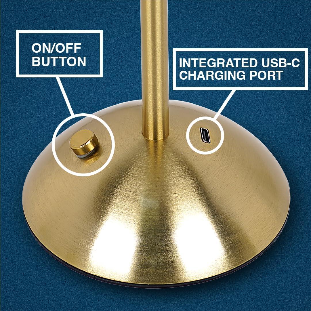 Sylvania 2.5W LED Battery Table Lamp with USB-C, Brass/Gold, 3 CCT Select (3000/4000 / 5000K), 63 LMS, Dimmable, 80 CRI, Damp Rated - 1 Pack (66875)
