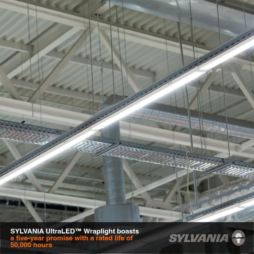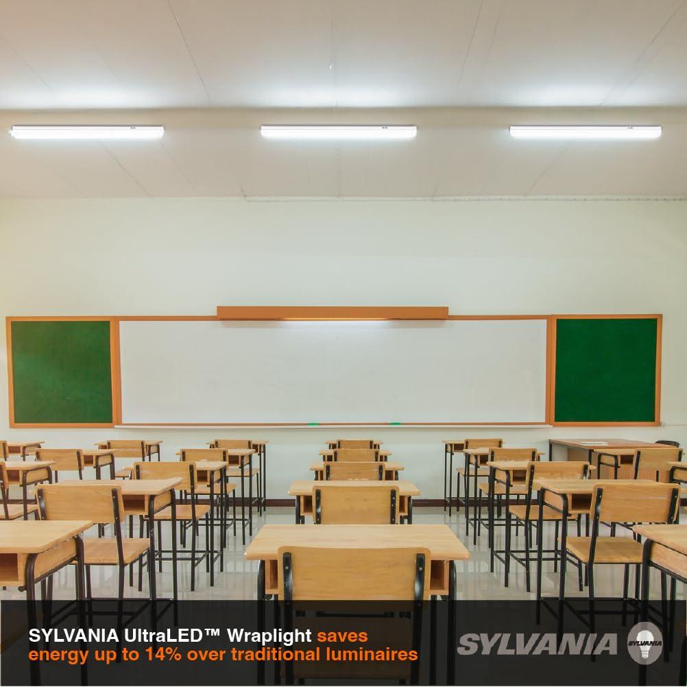 The SYLVANIA UltraLED WRAPLIGHT maximizes the energy savings of LED technology. Boasting a five-year promise and a rated life of 50,000 hours, the UltraLED Wrap Light Luminaire is ideal in many retail, office and education applications. This product can be surface mounted, hardwired, and up to 8 units can be linked. Accessories included. This luminaire has a modern, low profile design delivering an updated appearance to any space. Finished in a white metal body, take advantage of 4000K color temperature and uniform, glare-free illumination distribution. Experience energy savings up to 14%. UL damp rated.