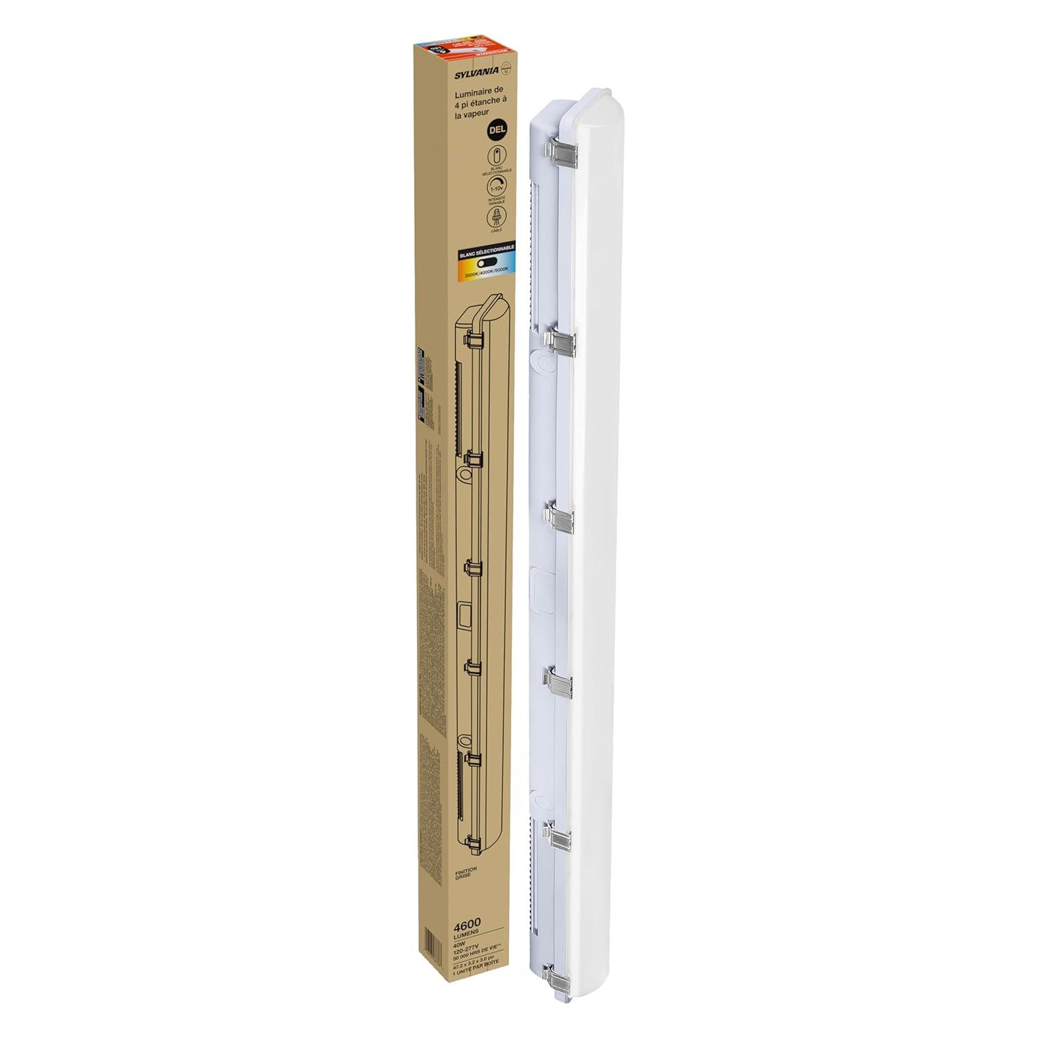 Sylvania 4ft Glare Free Vapor Tight LED Light, 40W, 3 Color Selectable (3500 / 4000K / 5000K), 4600 LMS, Dimmable, IP65 Wet Rated, Mount Accessories Included - 1 Pack (66736)