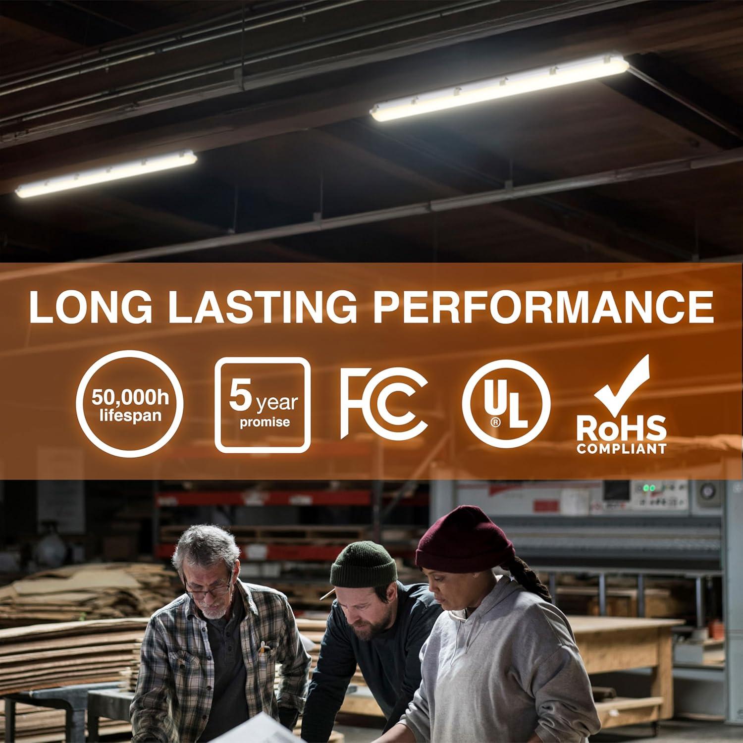 BRIGHT, ENERGY-EFFICIENT PERFORMANCE – Delivers 4600 lumens of glare-free illumination while consuming only 40 watts, offering excellent light output with lower energy costs. Ideal for replacing traditional fluorescent vapor tight fixtures in commercial, industrial, and residential spaces.