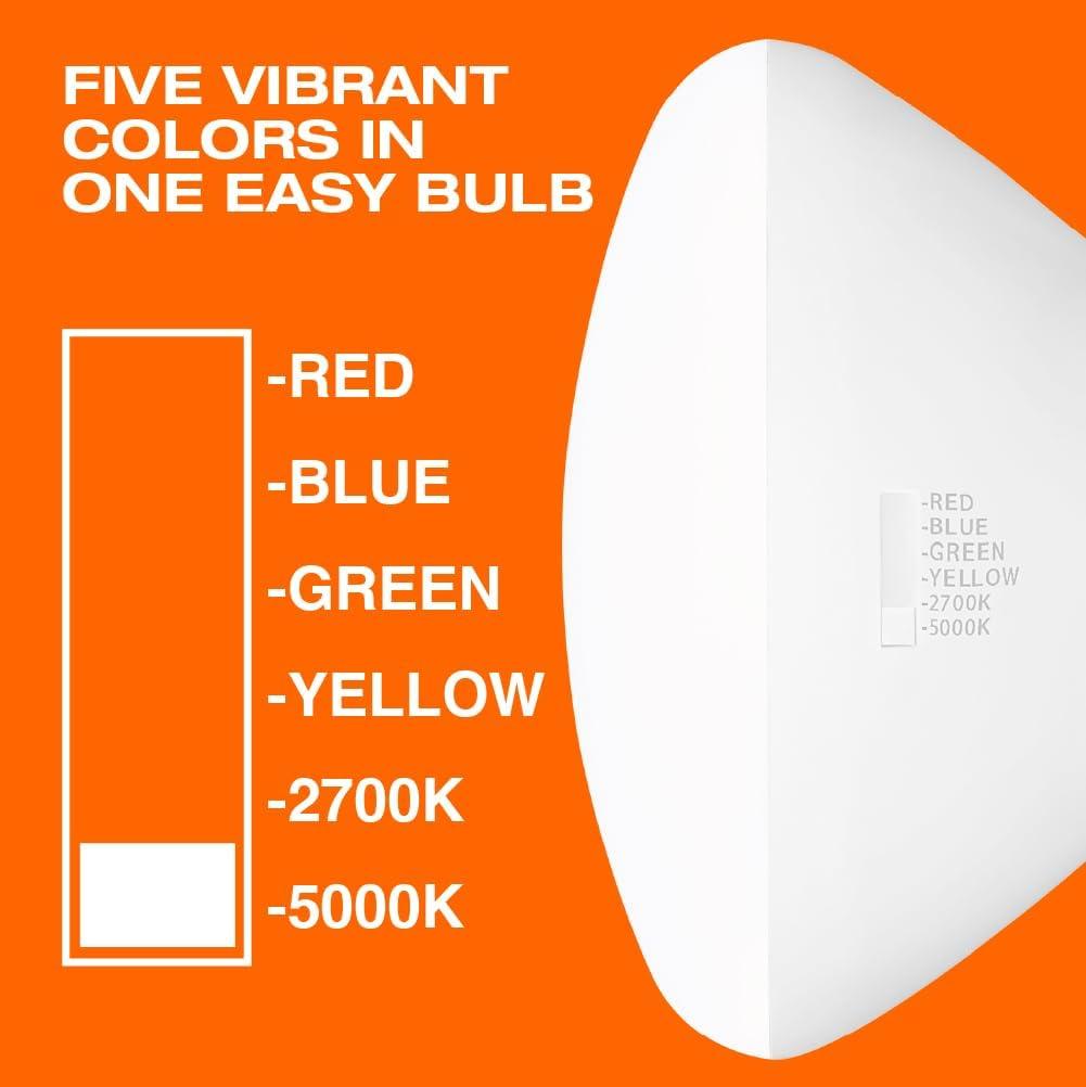 Five Vibrant Colors in One Easy Bulb – Instantly transform any space with your choice of red, blue, green, yellow, warm white (2700K) or crisp daylight (5000K)—all packed into one sleek BR30 bulb. No Wi-Fi, hubs, or apps needed—just switch it on and cycle through colors with a simple toggle. It’s the easiest way to create the perfect vibe for every mood and moment.