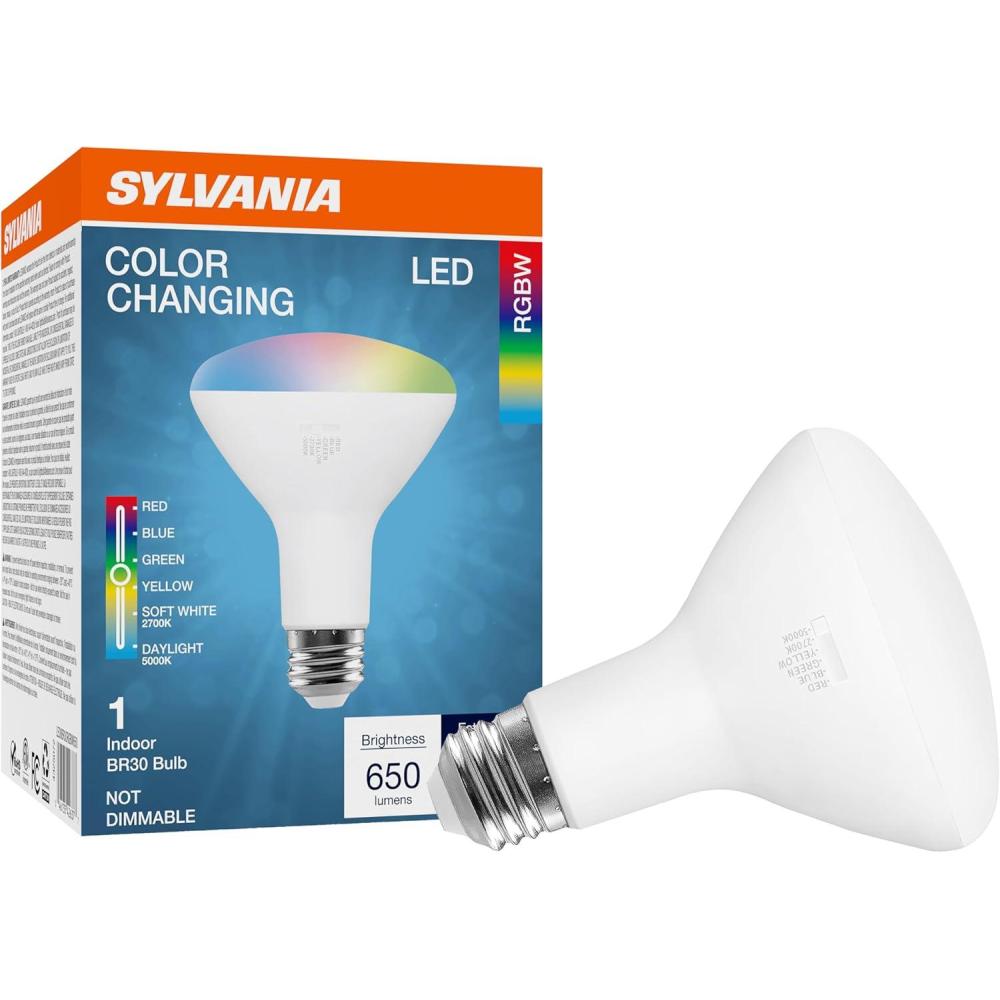 Sylvania 5 Color LED Light Bulb, Red/Blue/Green/Yellow/White, RGBW, 8W, BR30, E26 Medium Base, 2700K/5000K - 1 Pack (42637)