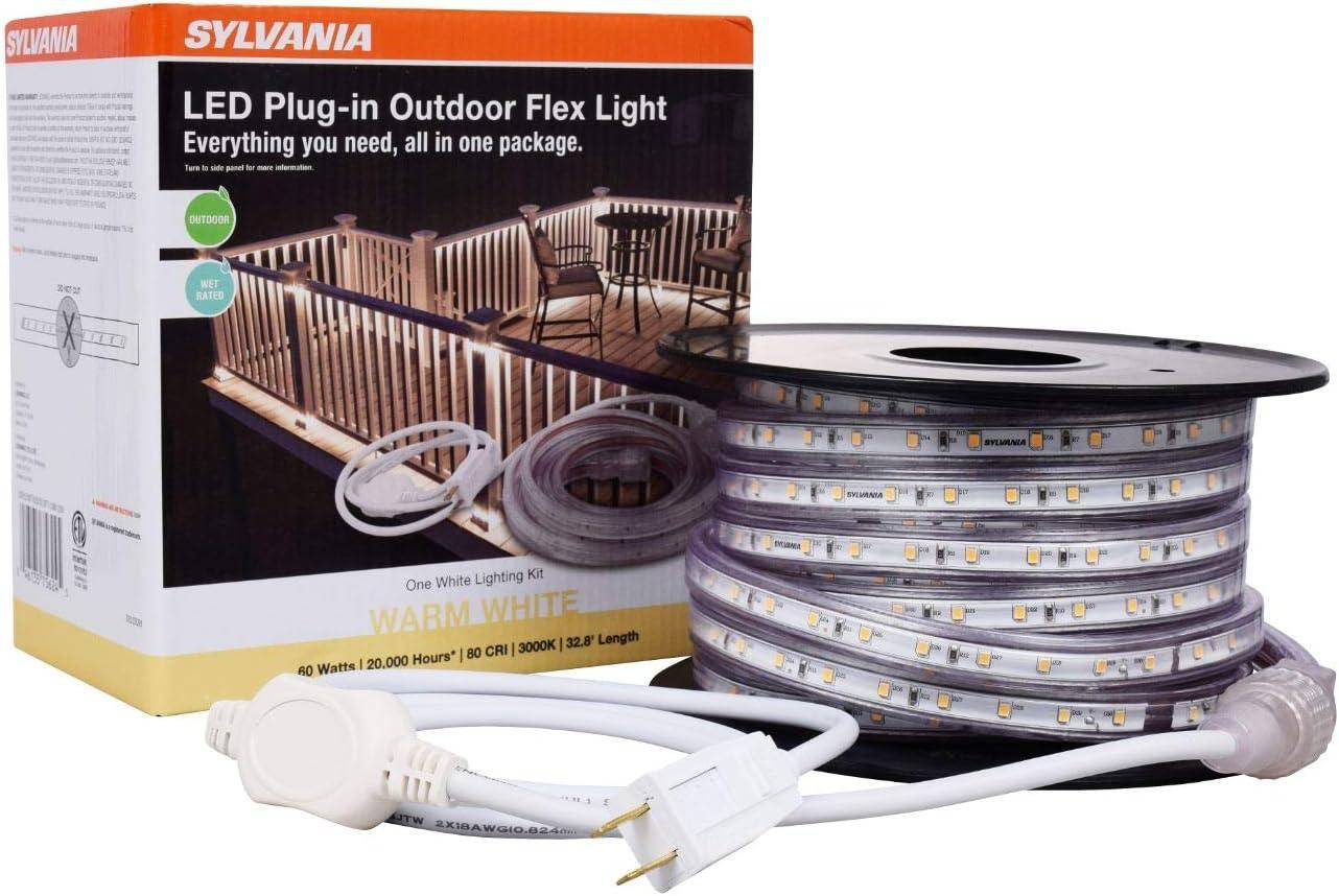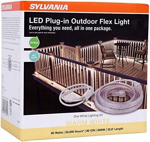 SYLVANIA LED Plug-In Outdoor Flex Light offers a complete solution for your lighting needs. Suitable for outdoor use year-round. The kit includes: (1) LED Light Strip with endcap, (1) AC power cord, clips and screws, as well as a full guide to installation.