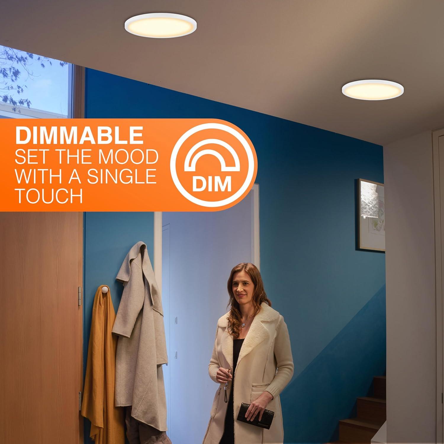 Sylvania 7″ Dual Selectable Slim Ceiling Light Fixture, 8W/10W/12W, 800/950/1150 LMS, 5 Color Selectable (2700/3000 / 3500/4000 / 5000K), Dimmable, White Finish – 1 Pack (67279)