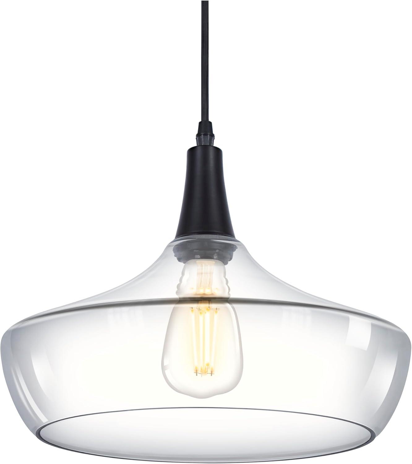 Modern Design with Timeless Appeal – Features a stylish matte black metal frame paired with a chic clear glass shade. This versatile design complements modern, industrial, farmhouse, or transitional interiors with ease.