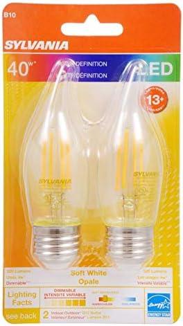 SYLVANIA B10 High-Definition LED Light Bulb, 4W Equivalent, 13 Year, Bent Tip, Medium Base, 320 Lumens, 2700K, Soft White, Clear – 2 Pack (40184)