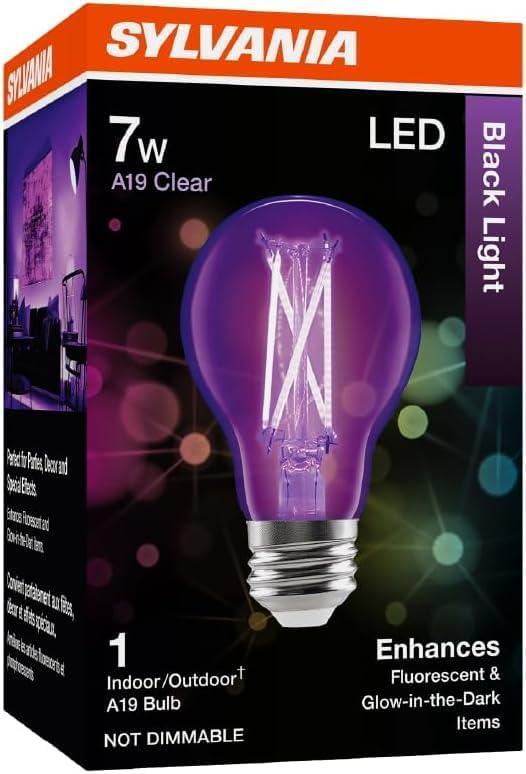 Unleash a world of glowing possibilities with the SYLVANIA Black Light LED Light Bulb! Perfect for transforming any space into a captivating visual experience, this 7W A19 bulb delivers stunning black light effects that bring your parties, Halloween setups, stage performances, and glow-in-the-dark events to life. With a powerful E26 medium base design and a clear glass finish, it combines energy-saving brilliance with vivid illumination. Backed by a 2-year promise and a 10,000-hour lifetime, SYLVANIA ensures long-lasting fun, creativity, and reliability—every time you flip the switch.
