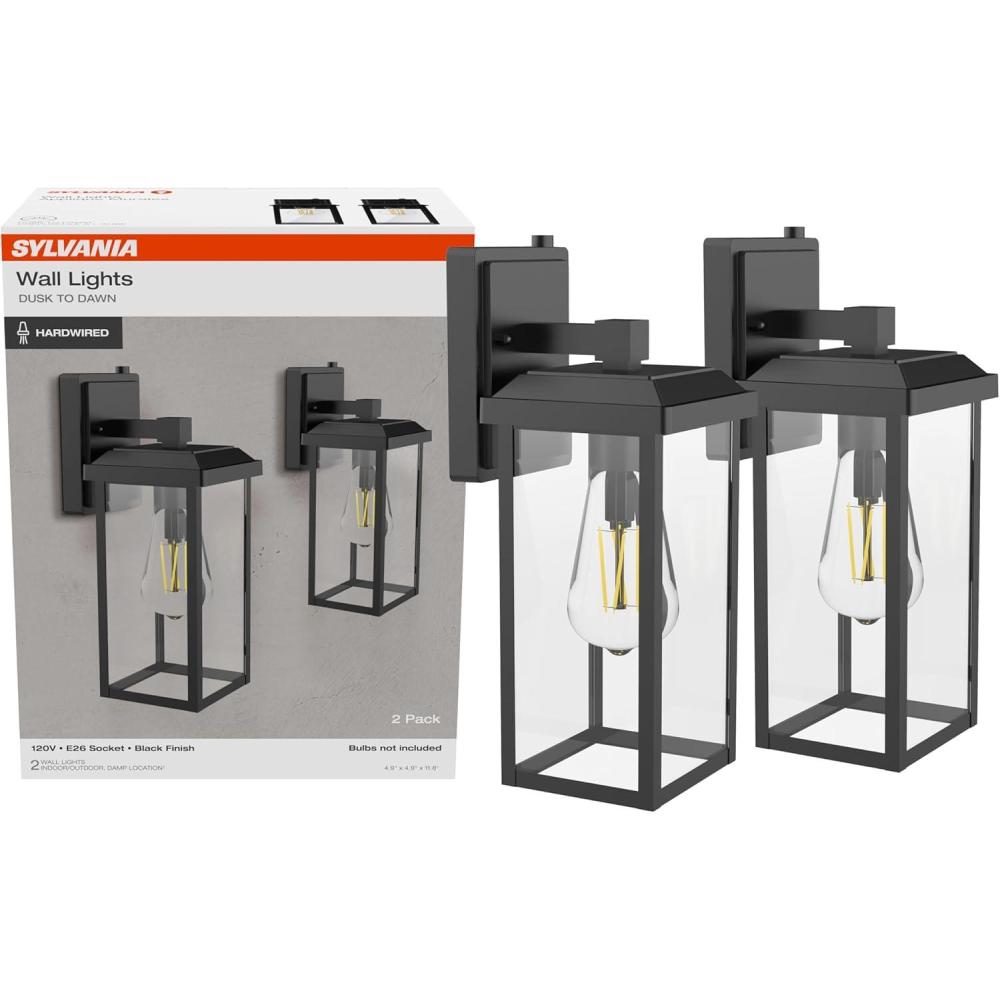 Transform your home with the SYLVANIA 2-Pack Indoor and Outdoor LED Light Fixtures. These stylish black metal lanterns feature clear glass for bulb visibility, adding a modern touch to any setting—from cozy kitchens to welcoming patios. Each fixture uses a standard E26 bulb base and operates at 120V, offering both style and functionality. Installation is a breeze with included accessories: junction box screws, 3 wire connectors, 1 crossbar mounting bracket, 2 fixture mounting finials, 2 hex nuts, and 2 mounting screws. Whether you're upgrading your entryway or adding ambiance to your outdoor space, SYLVANIA has you covered with lighting solutions that bring comfort, style, and dependability to your home.