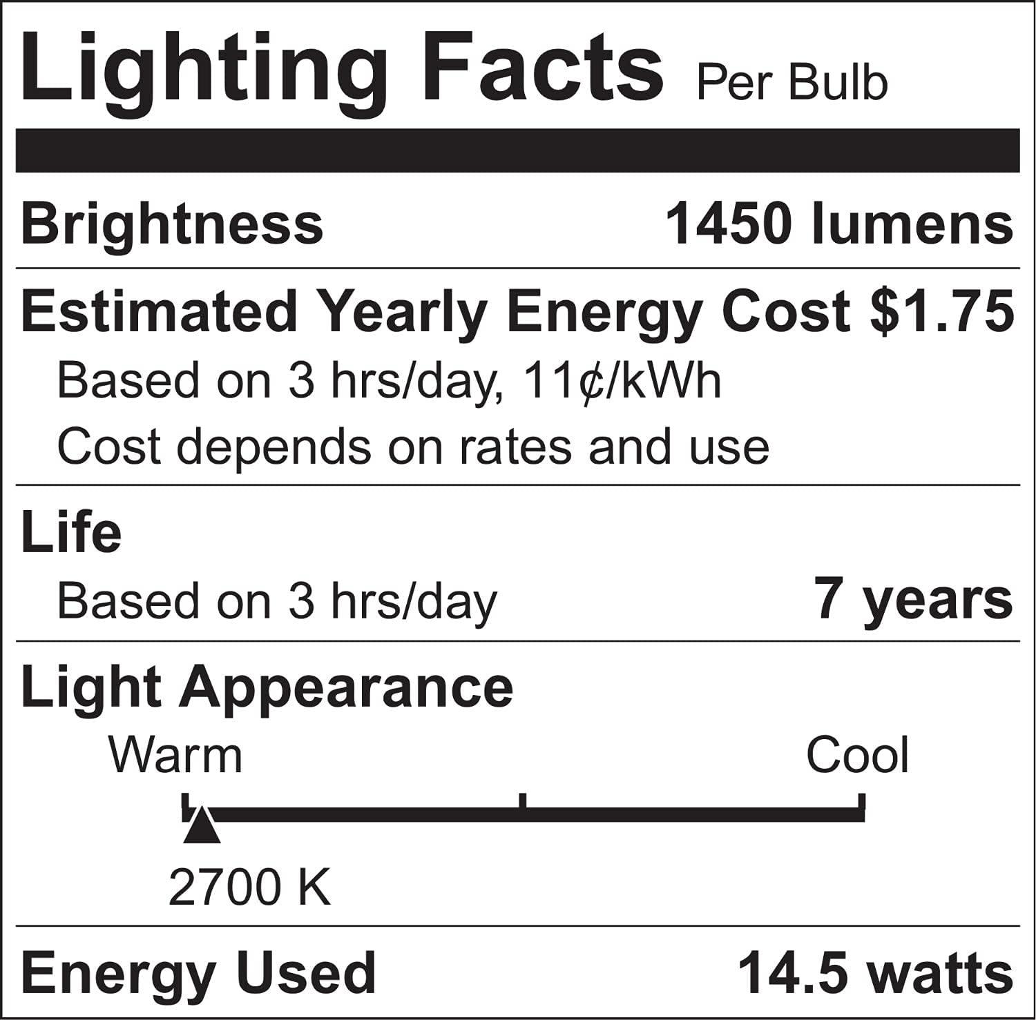 ENERGY-SAVING – These LED light bulbs require less energy and can save on your energy bill. An estimated energy cost of only $1.08 per year.