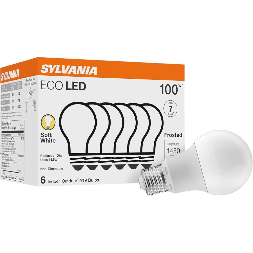 Bring modern and best-in-class lighting into your home with the energy-saving SYLVANIA 9W ECO LED A19 soft white bulbs! This 9 watt LED lamp is specifically designed to replace 60-watt incandescent bulbs. At only 9 watts, this SYLVANIA LED lamp can emit a bright 750 lumens, saving you money on your electricity bill. In fact, this bulb’s estimated annual energy cost is just $1.08! With a lifespan of 7 years, this LED lamp emits 750 lumens. What’s more, SYLVANIA LED lights don’t need a warm up, don’t overheat, and don’t emit harmful UV-, IR-, radiation and are mercury-free. You can also safely install them in ceiling light fixtures (not for use with fully enclosed fixtures) or accent lights. If you like modern lighting in your living room or workspace, then this product’s 2700 soft white color is just right for you! See the clear difference SYLVANIA makes; better lighting for better living.