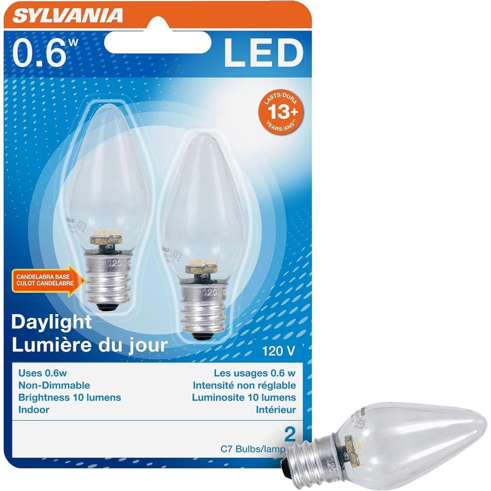 SYLVANIA LED C7 Accent Light Bulb, Efficient 0.6W, 4 Lumens, 2 pack(Bright Light)