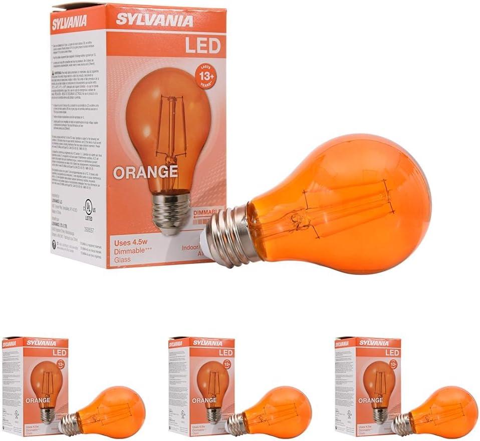 SYLVANIA LED Green Glass Filament A19 Light Bulb, Efficient 4.5W, 40W Equivalent, Dimmable, E26 Medium Base – 1 Pack (40303)(Orange)