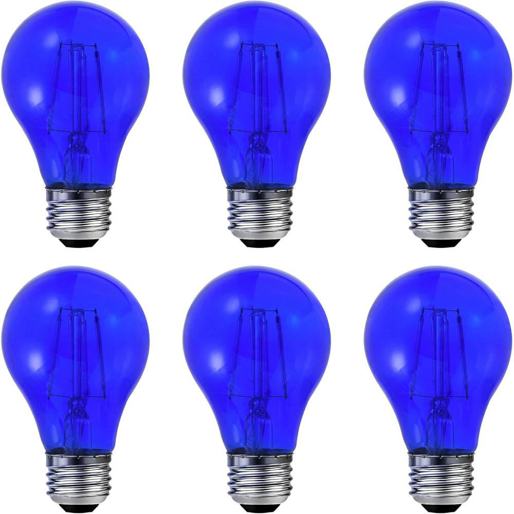 Sylvania LED Red Glass Filament A19 Light Bulb, Efficient 4.5W, 40W Equivalent, Dimmable, E26 Medium Base – 6 Pack (41740)(Blue)