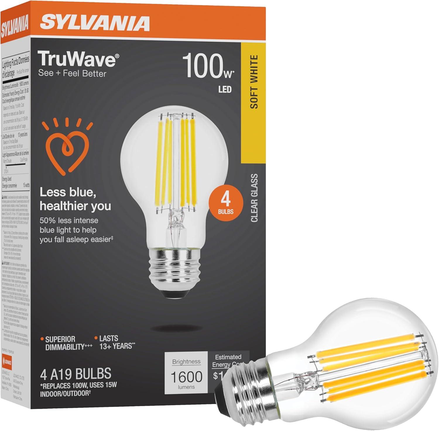 SYLVANIA LED TruWave Natural Series A19 Light Bulb, 60W Equivalent, Efficient 8W, Dimmable, Medium Base, 800 Lumens, Clear, 2700K, Soft White(40804), Daylight, 16 Count (Pack of 1)(Soft White)