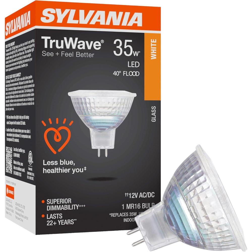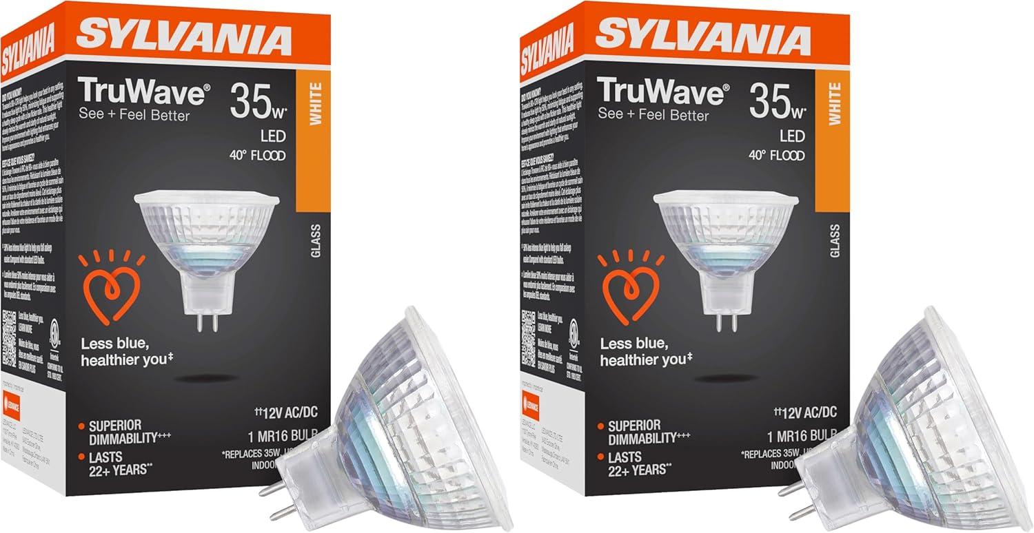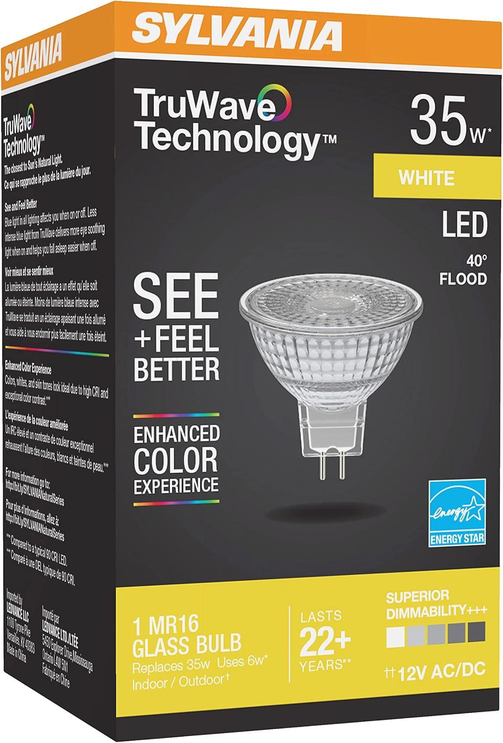 SYLVANIA MR16 Ultra LED Light Bulb, 35° Flood, 6W, 35W Equivalent, 22 Years, GU5.3 Base, Dimmable, 450 Lumens, 3000K, White, Glass – 1 Pack (78239)(1 Count (Pack of 1))