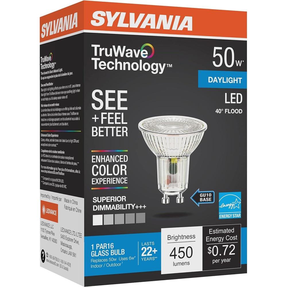 Sylvania LED TruWave Natural Series PAR16 Light Bulb, 50W Equivalent Efficient 6W, GU10 Bi-Pin Base, Dimmable, 5000K, Daylight - 1 Pack (40933)(1 Count (Pack of 1))