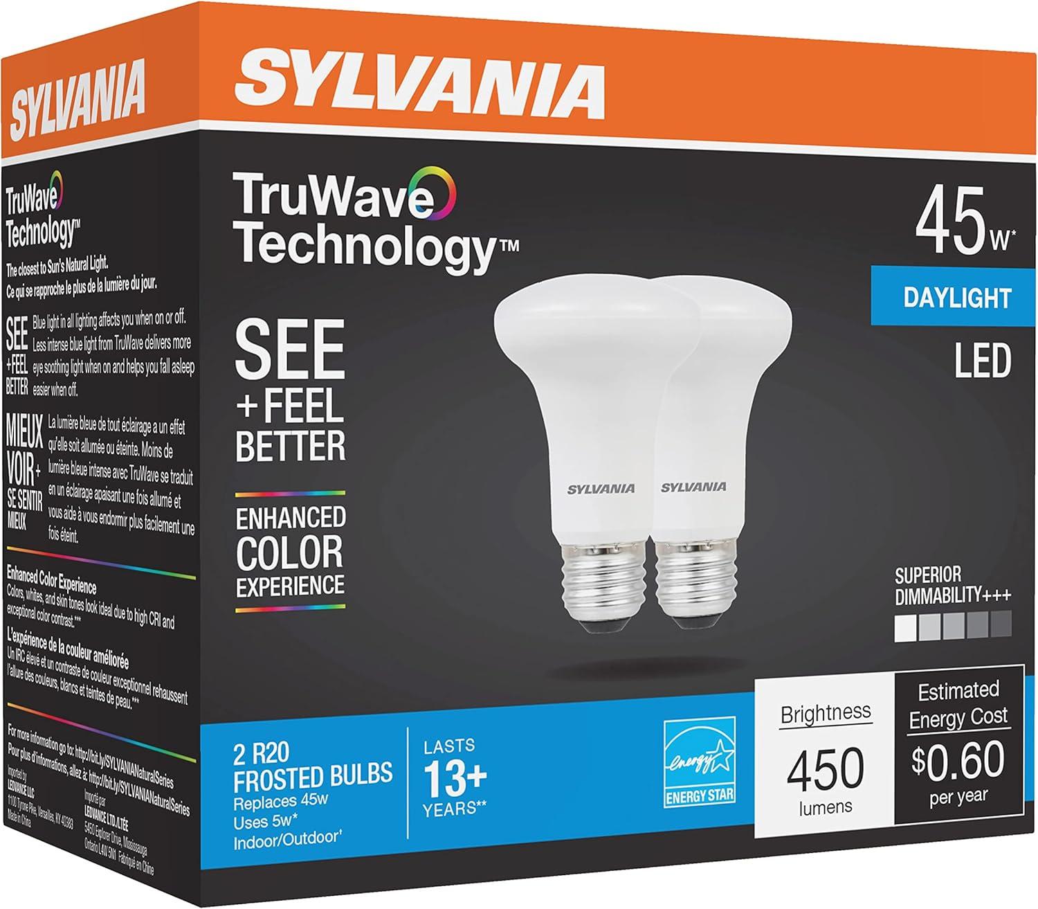 Sylvania LED TruWave Natural Series R20 Light Bulb, 50W Equivalent Efficient 5W, Dimmable, Frosted, 3000K, Neutral White – 2 Pack (40789)(Daylight)
