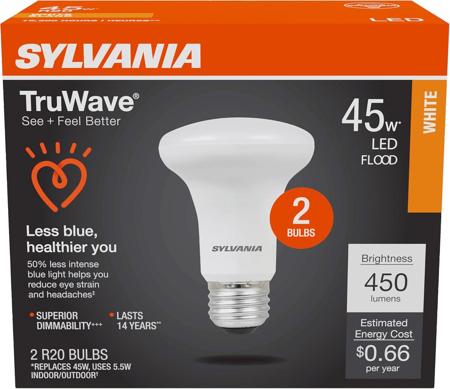 Sylvania LED TruWave Natural Series R20 Light Bulb, 50W Equivalent Efficient 5W, Dimmable, Frosted, 3000K, Neutral White - 2 Pack (40789)(White)