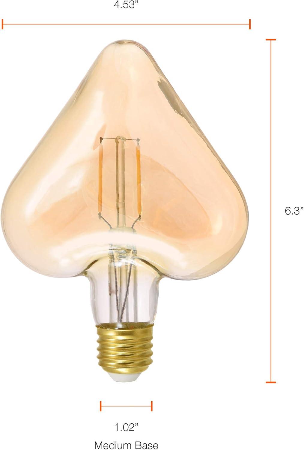 MULTI-USE Light Bulbs: These Antique Edison 40 Watt light bulbs have an E26 base, the heart-shaped led bulb can be used in indoor and outdoor applications. These lightbulbs are 2175 Kelvin and 150 Lumens and produce a warm amber color. The E26 base is a standard (medium) base