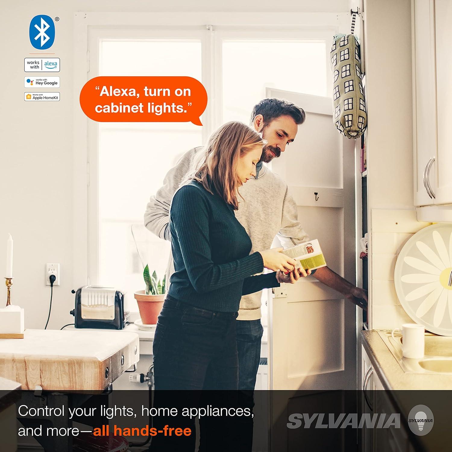 Experience intelligent, connected lighting solutions in your home with SYLVANIA SMART+ Bluetooth Mesh connected lights, strips, and accessories. Easily pair your lights and accessories to your smart speaker for hands-free lighting control. No additional hub or hardware is required. Experience reliable, stable connections for home lighting, appliances, heaters, fans, and more. Set schedules for coffee makers and holiday lights. Use SYLVANIA SMART+ lighting to add flexibility to your living space, support your well-being, and boost home security when you are away. Build your SMART+ life with our Bluetooth Mesh Outlet to experience more stable connectivity, control, and daily convenience. With over 100 years of light innovation, experience seamless SMART+ living – only with SYLVANIA.