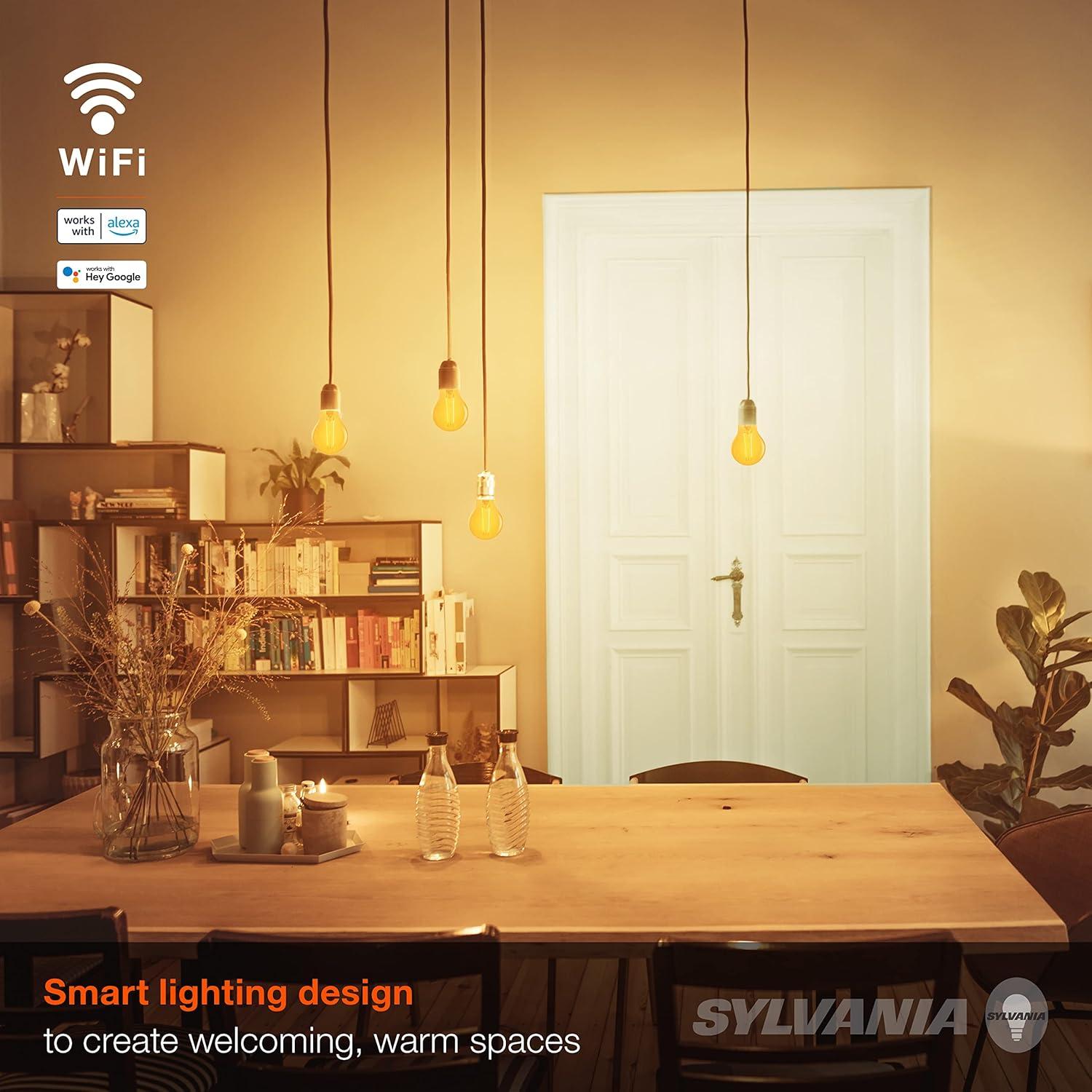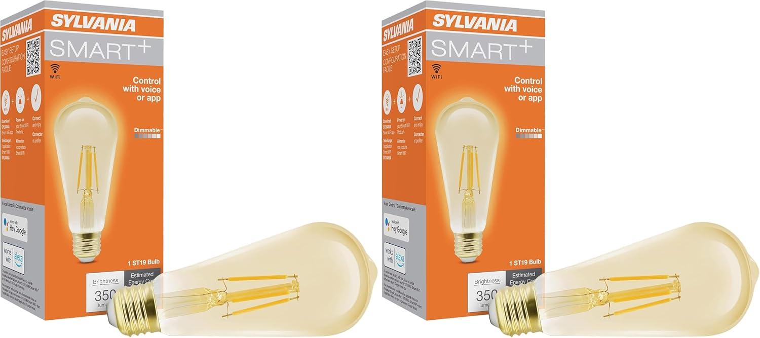Sylvania WiFi LED Smart ST19 Light Bulb, 5W Efficient with Filament, for Alexa/Google Assistant, Energy Star, Clear, 2700K, Soft White – 1 Pack (75799)(Amber)