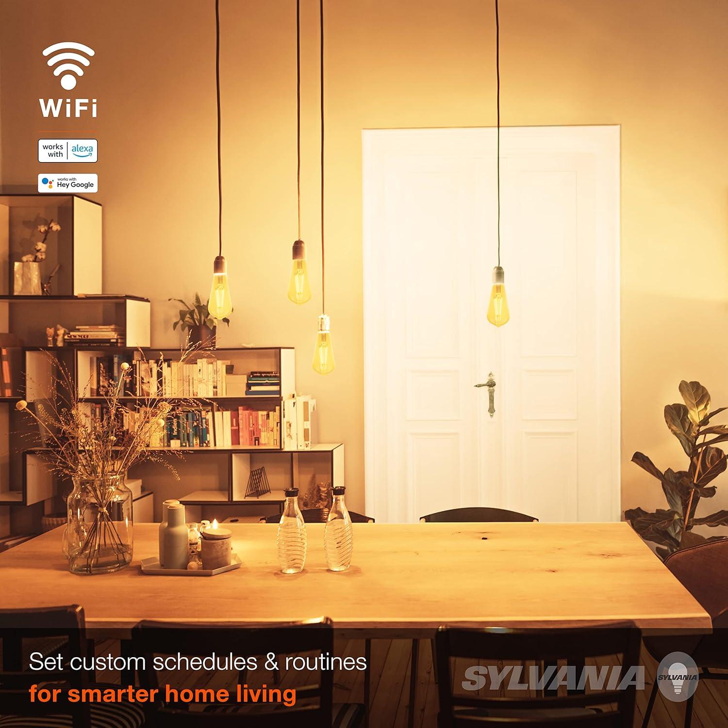 Sylvania WiFi LED Smart ST19 Light Bulb, 5W Efficient with Filament, for Alexa/Google Assistant, Energy Star, Clear, 2700K, Soft White – 1 Pack (75799)(Tunable White)