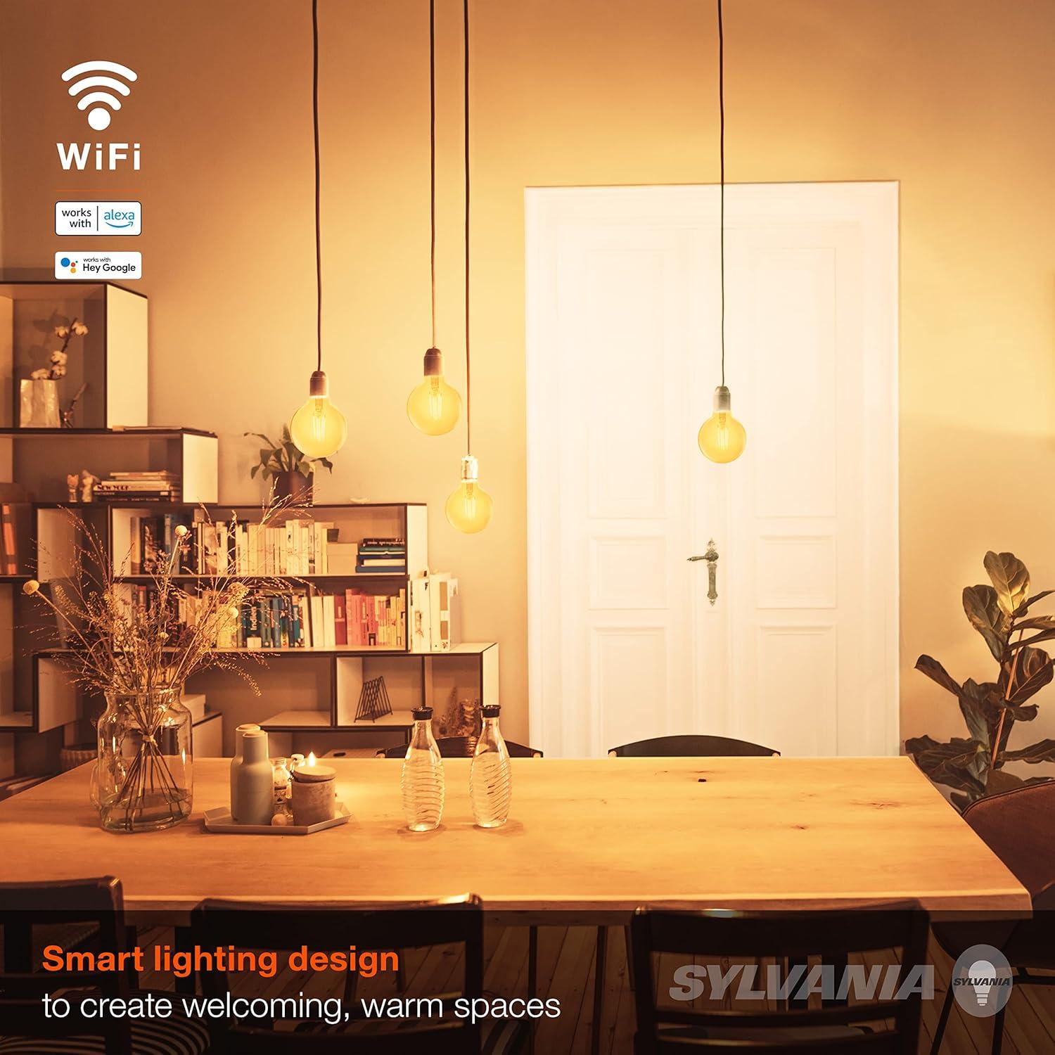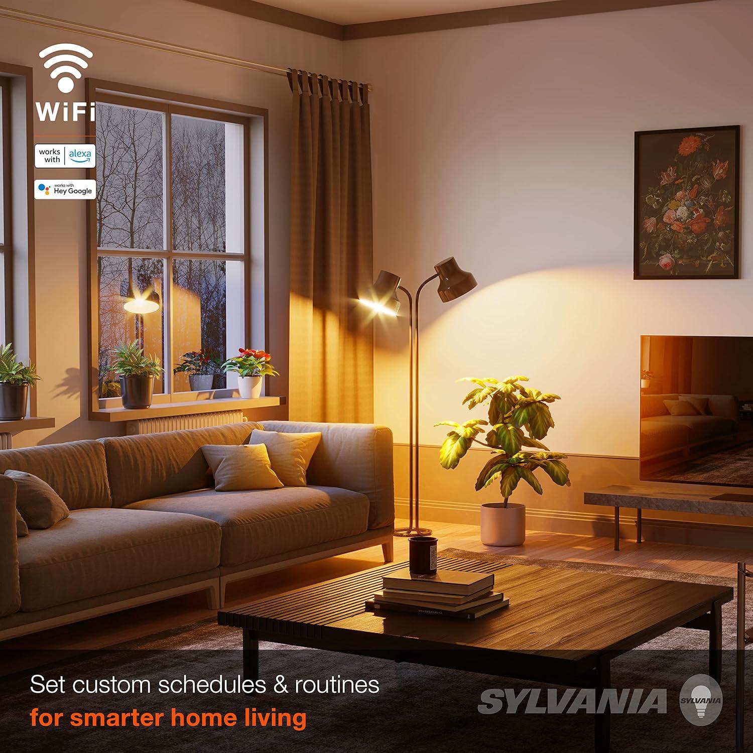SYLVANIA SMART+ WiFi products provide dynamic and hands-free home experiences by reimagining lighting with just the sound of your voice – anytime, anywhere. This amber and RGBW color LED light bulb is compatible with Alexa and Google Assistant, and offers reliable illumination designed to simplify your favorite home spaces directly from your smartphone or voice command. With features with either app or voice control, you can customize the brightness to match your mood, an occasion, or the time of day. Use simple commands to turn the lights on and off, dim or brighten. With set-up in minutes, use the free SYLVANIA SMART+ WiFi App to begin so you can easily start your home experience via voice control and your smart home assistant. Rethink, reimagine, and relive your home experience with SYLVANIA SMART+ lighting.