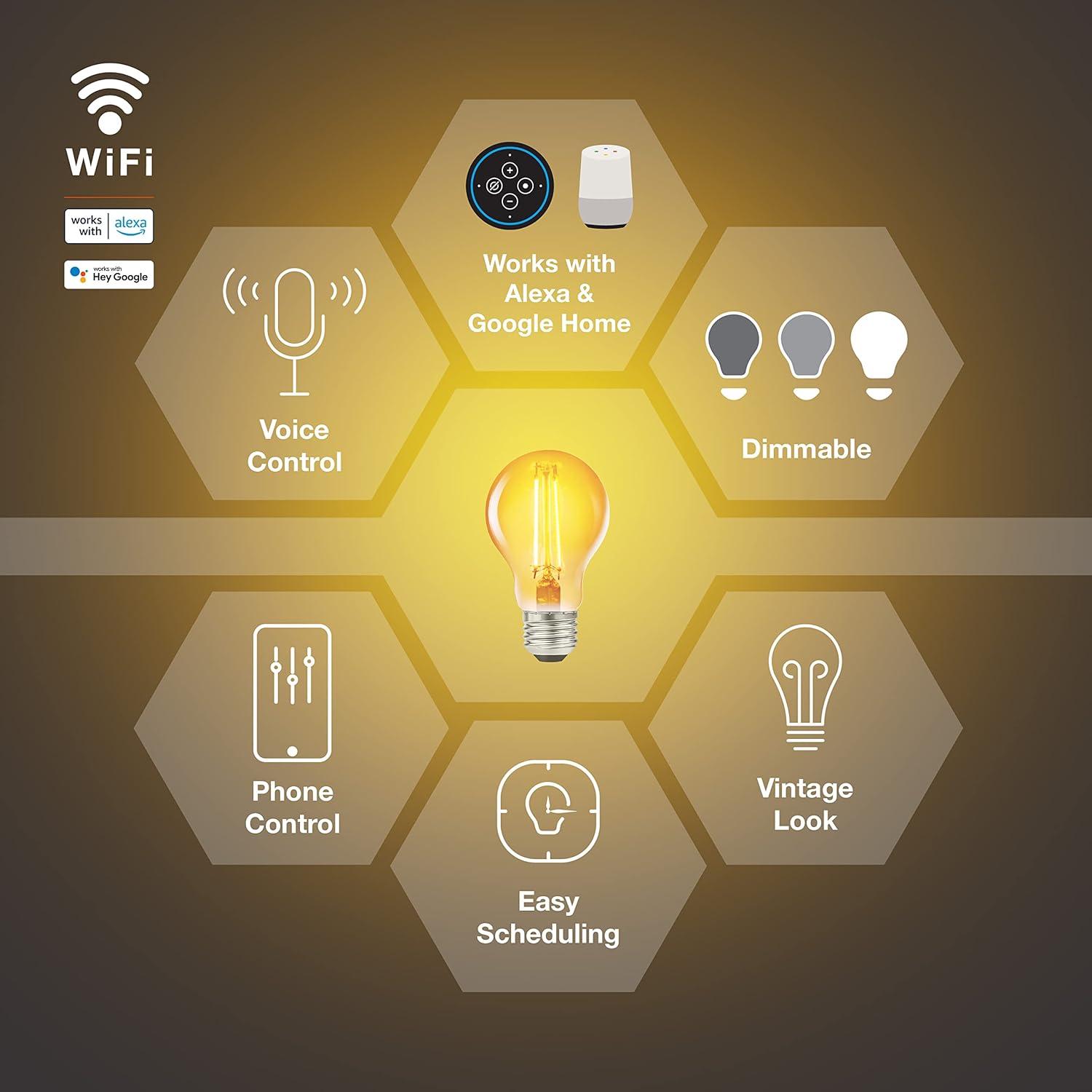 Designer Lighting: This clear ST19 filament smart bulb emits a soft color of 2700K. Easily create the perfect home living experience with lighting scenes that match the mood. Dimmable, clear finish, and Energy Star rated.